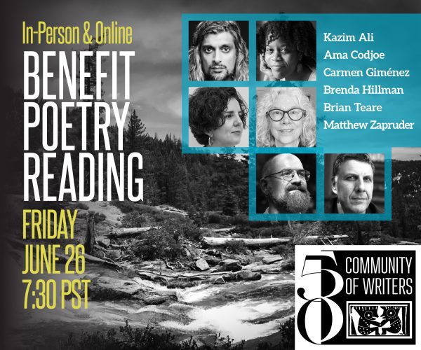 Our annual Benefit Poetry Reading will feature poems from our 2026 Poetry Staff: Kazim Ali, Ama Codjoe, Carmen Giménez, Brenda Hillman, Brian Teare and Matthew Zapruder.
