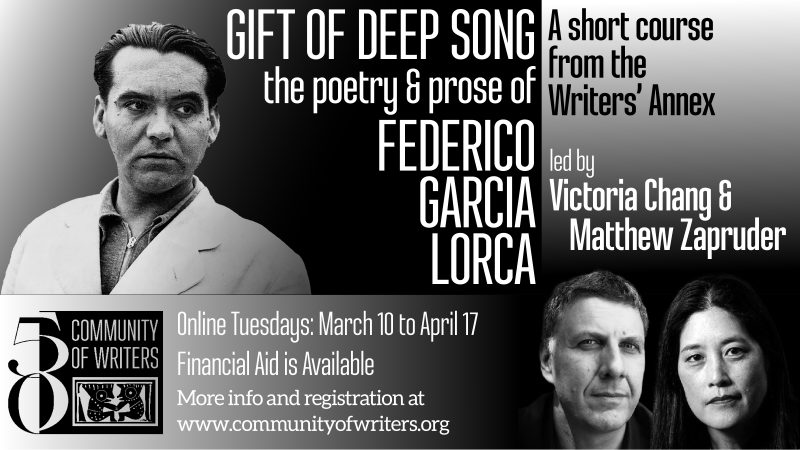 - In the first hour, Victoria and Matthew will close read the assigned poems by Lorca for the class, giving background and context, and linking the poems with key concepts in Lorca’s poetic cosmology (duende, deep song, the particular qualities of the poetic imagination) in order to deepen our readings.