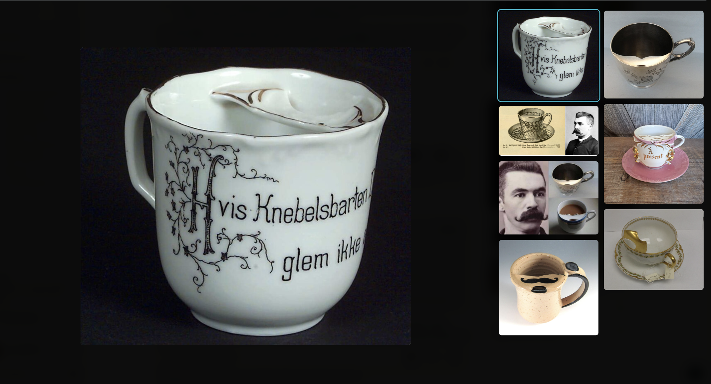Plus, it seems likely that “sham crown derby” is a knockoff of a high end porcelain. So, really, he’s drinking from a proper joke teacup to keep his moustache dry. Photo.